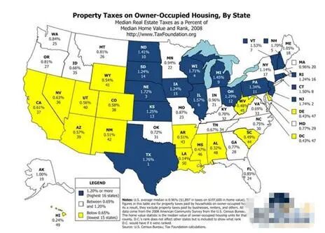 美国房产税属于地方税种,由各地自行征收,一般在0.25%到3%之间。