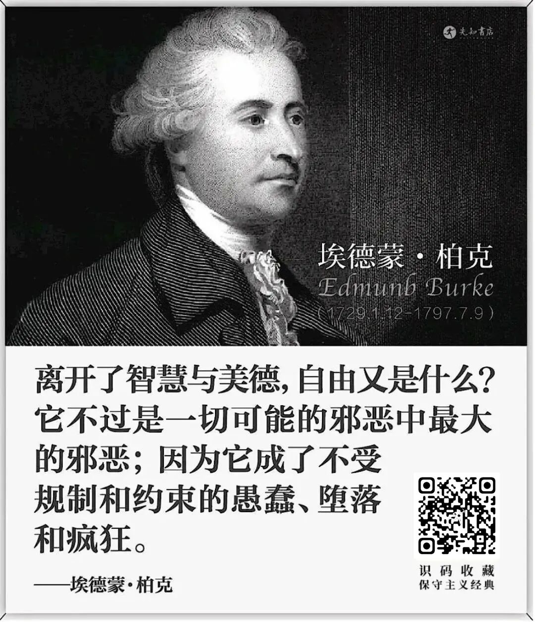 一个民族最大的遗憾并不是无知,而是封闭通往真知的大门。比较以柏克为精神标杆的国家(如英美),和那些轻视柏克的国家,其迥然不同的国运,足以证明柏克的重要性。