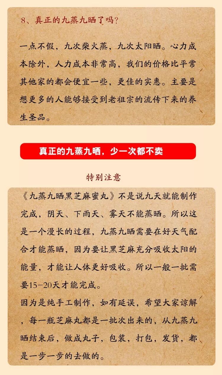 据古书《抱朴子》记载,黑芝麻只有经过九蒸九晒之后,方能消化,得其裨益。