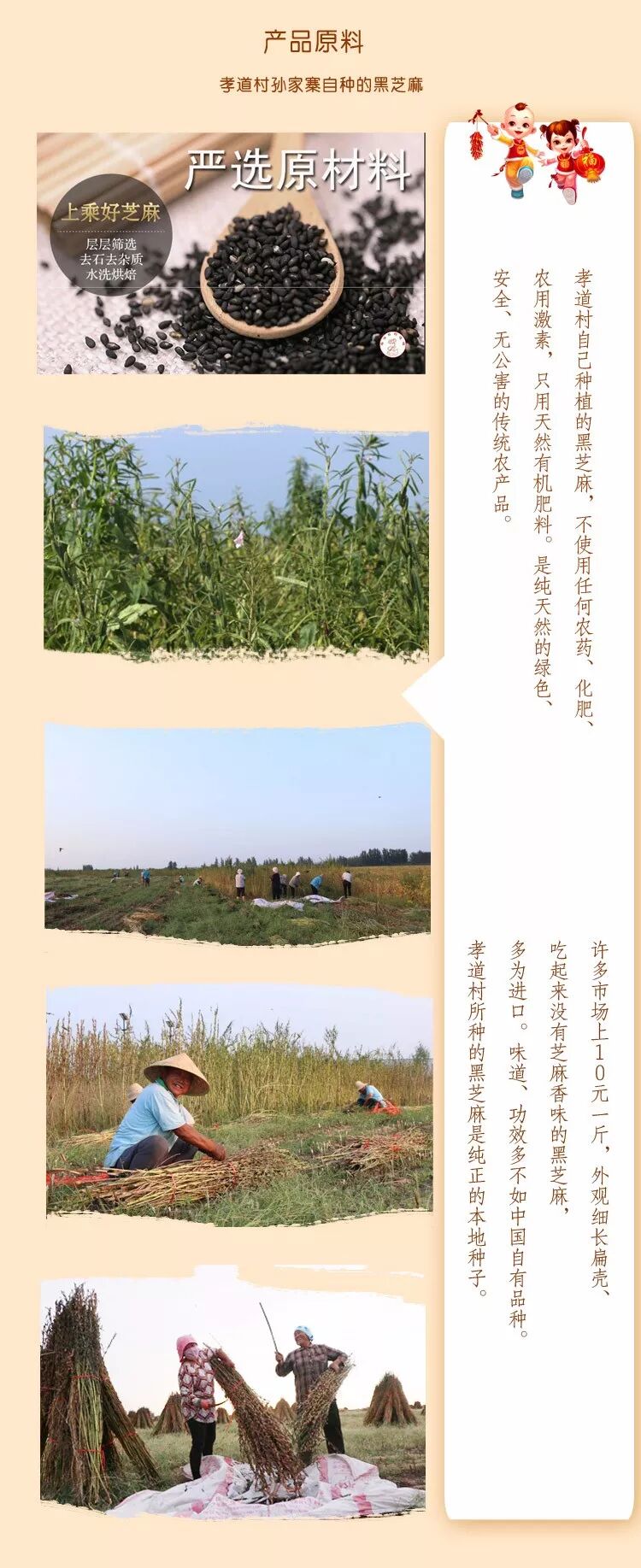 孝道村自己种植的黑芝麻,不使用任何农药、化肥、农用激素,只用天然有机肥料,是纯天然的绿色、安全、无公害的传统农产品。