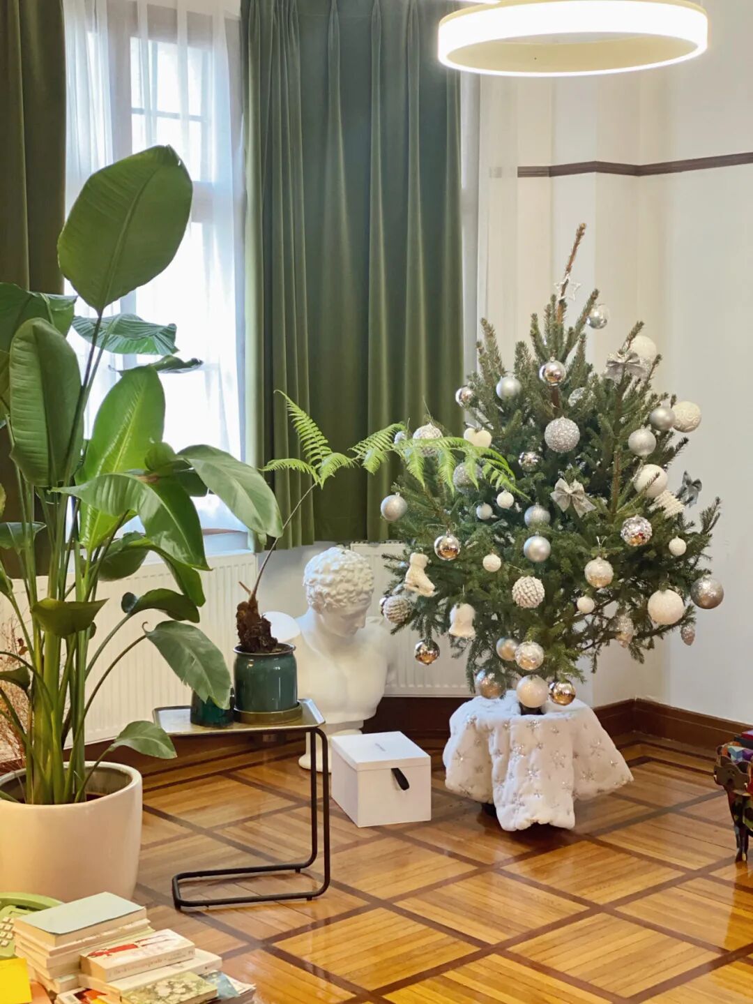 今年圣诞季,我收到的第一份“大礼”是女朋友运来的一棵“活体圣诞树”,连着新鲜的湿漉漉的泥土,一棵硕大圆润的松树就这样扎根在客厅里。我还在震惊之际,收到她的消息:打开旁边的纸袋!里面有圣诞树装饰,还有毛茸茸树裙!