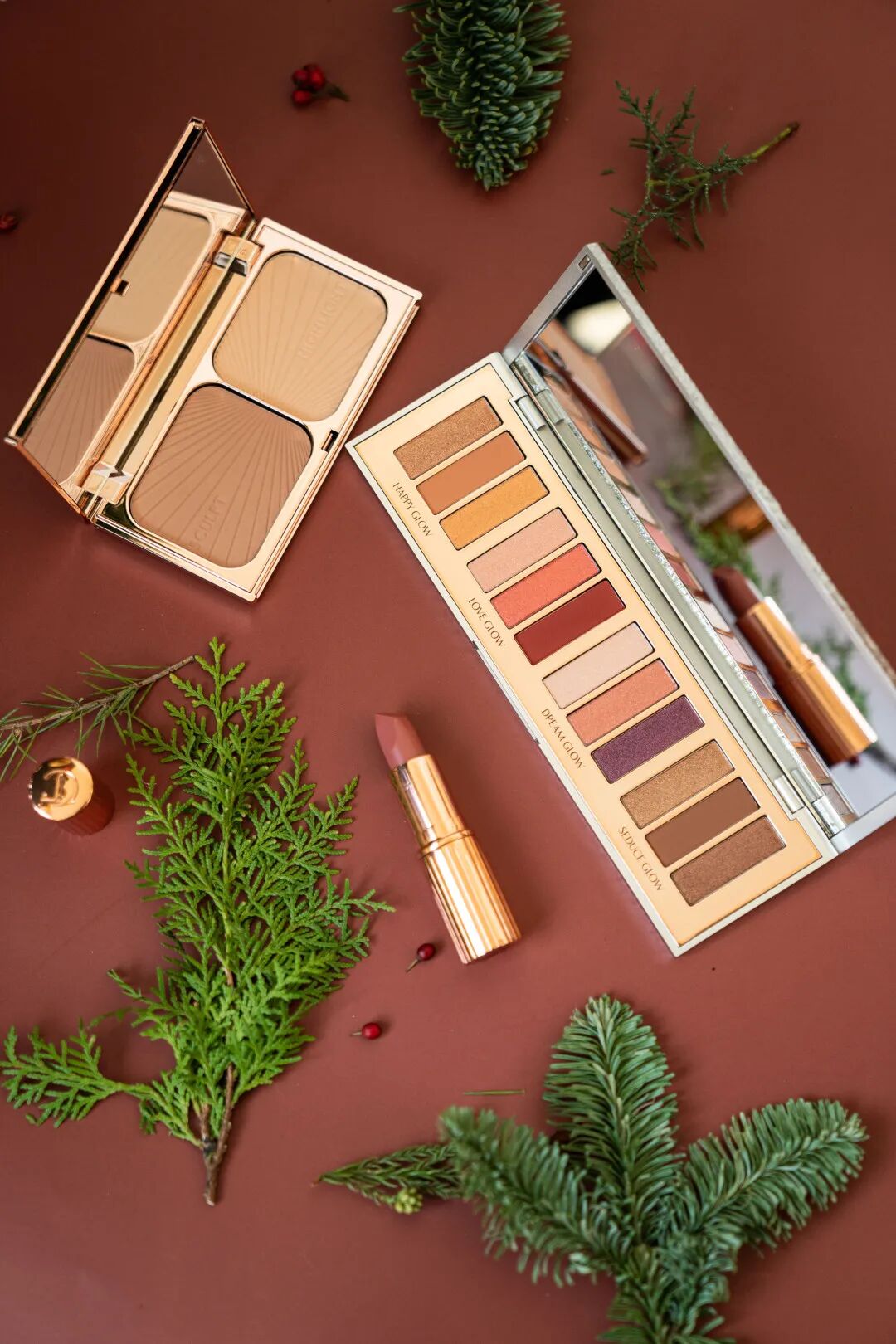 预算更高、或者特别喜欢Charlotte Tilbury彩妆的,可以继续叠加,收集她们其他的圣诞限量彩妆,今年有「臻耀宝石12色限定眼影盘」(挺好,今年是简单的暖色调为主,新手友好)、「限定高光修容盘」(粉状雾面,比较适合亚洲人的骨骼走向)、「炫耀钻四色眼影盘」(蓝色系冷调眼影,让我想到章小蕙的经典眼妆👀)。