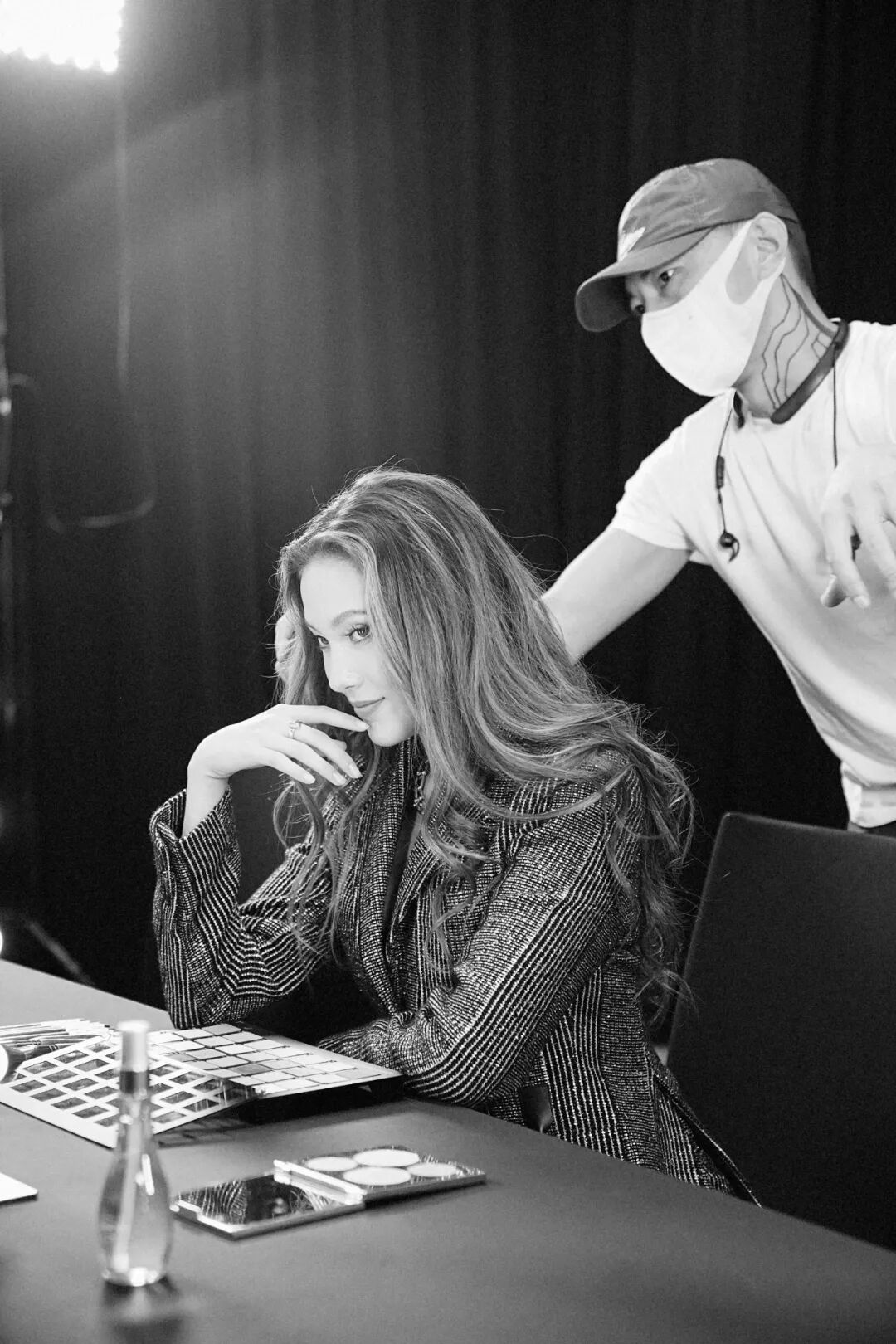 爱凌有一种小太阳的个性,总能在细枝末节里注意到别人的好,并毫不吝啬地给予夸赞。有几次她笑盈盈和化妆师说:哇,你太神啦!这简直是不可能的任务!化妆师给她小心翼翼接睫毛的时候,她轻声念:加油加油!
