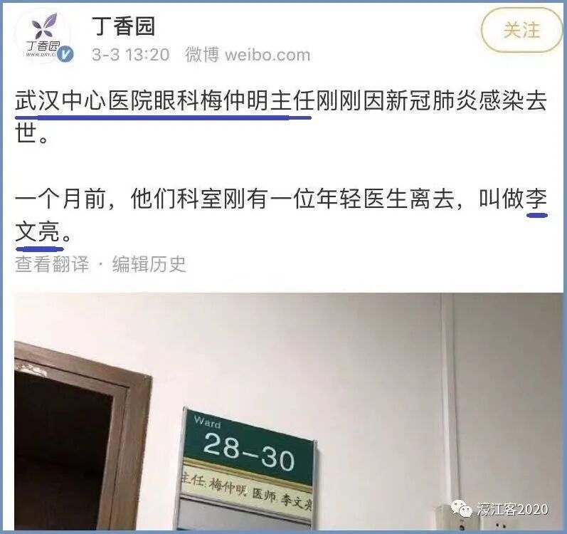 根据目前已知的公开报道,武汉中心医院眼科主任梅仲明医生,也被评为首批烈士。武汉市中心医院——李文亮医生生前工作单位,是当地27家三级甲等医院之一,也是较早接触到新冠病毒感染肺炎病例的医院之一。上月在一则报道中称“老子到处说”的艾芬医生是这家医院的急诊科主任。据报道,武汉市中心医院在全市定点医院中,收治的发热病人仅次于金银潭医院。在参与新冠肺炎救治的过程中,该院4300多职工中,到2月初达到新冠肺炎临床确诊标准的已达230多人。![]()