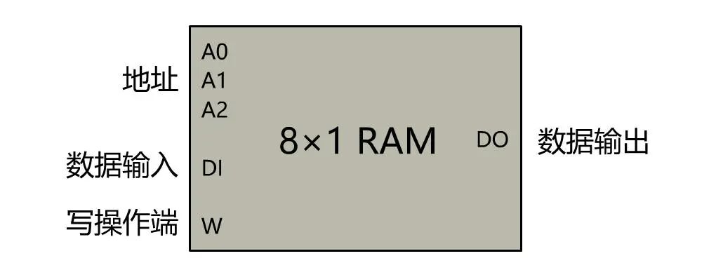 这个组件通过再次组合,可以形成 N × M 的 RAM 阵列。比如我们可以表示一个 1024 * 8 的 RAM 阵列。