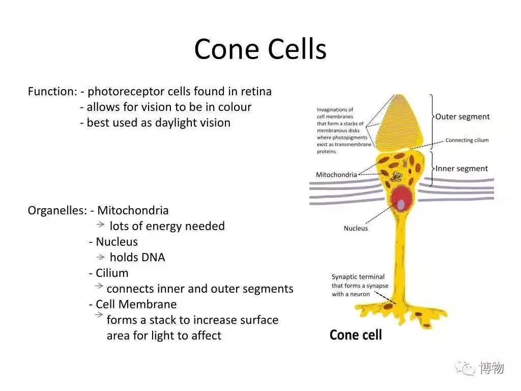 视锥细胞,对强光和颜色具有高度的分辨能力
