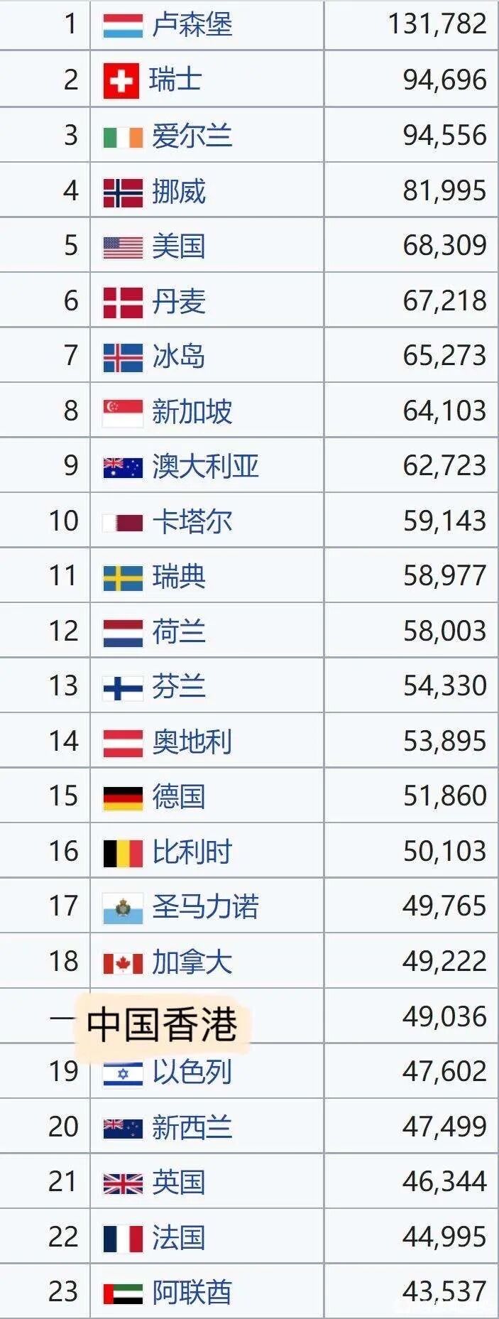 2021年中国城市人均GDP排名