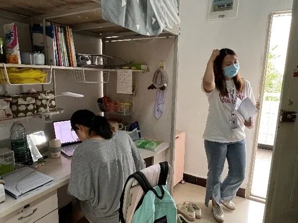 “各位大一同学,上网课时间请勿关宿舍门”,甘升碧、林欣雨两位辅导员挨个宿舍走完上网课的大一新生的宿舍,“刚上大学,有的同学还不熟悉课程的平台、老师的授课方式,就遇上上网课,实在不放心”,这几天,辅导员、党员学习领航员、助理辅导员在宿舍“上班”了,上网课是为了防疫安全,但网课质量如何保障,如何让大一学生快速跟上大学上网课的方式,辅导员和党员学习领航员将看到的情况与新生们、班导师们、任课老师们进行沟通,协助大一新生学习,养成良好学习生活习惯、适应大学学习方式方法。