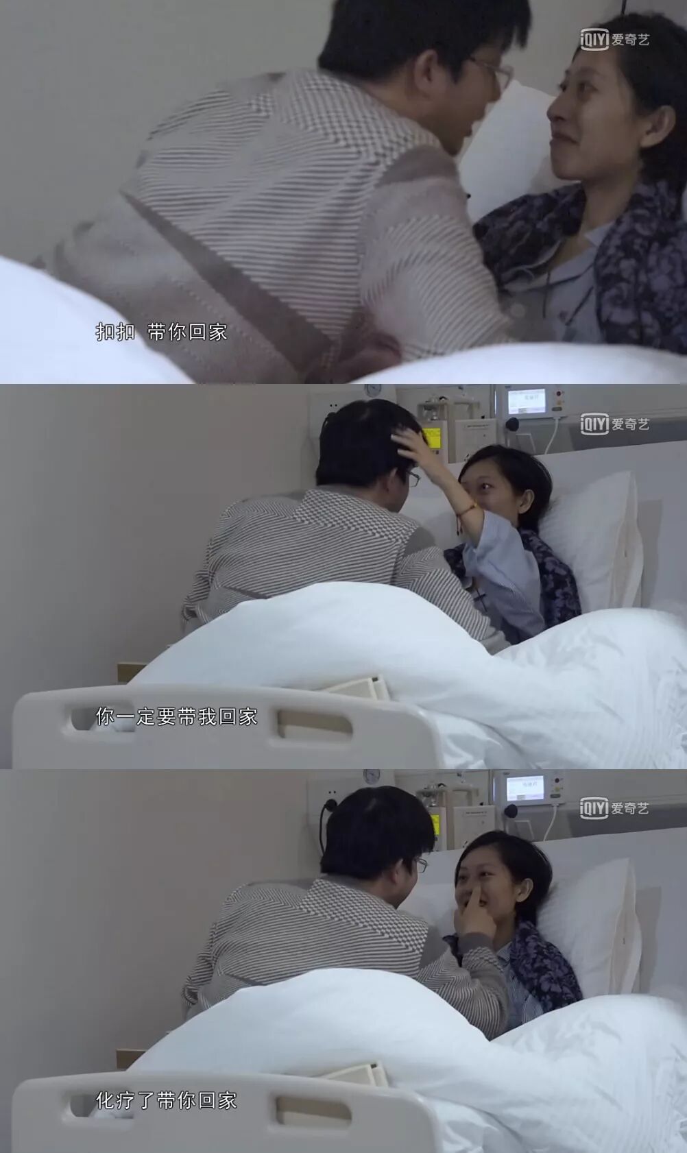 第九集,一个似《滚蛋吧,肿瘤君》一样的故事。1989年出生属蛇的女孩子,结婚不到一年、怀孕五个月的时候被查出得了一种极为凶残的癌症,医生告诉他的丈夫,只比她大一岁的男孩说,没有治疗的意义了,她喜欢做什么就尽量满足她吧。他去告知她这个消息之后的两个人那场对话,又美又疼。躺在病床边给她喂饭,说后面要化疗了,会掉头发,她本来还在大大咧咧嚼着嘴里的饭想要掩盖住绝望害怕吧,嚼着嚼着,仰了一下头,眼泪就下来了,然后整个人退败下来:「头发还能长出来吗……你一定要带我回家……」两个人头抵头互相鼓励,擦着自己和对方脸上的泪,说着最真最真的誓言。然后女孩又笑了,说要去买lady gaga的bobo头套戴,说,「以后每一天我们都要笑……」