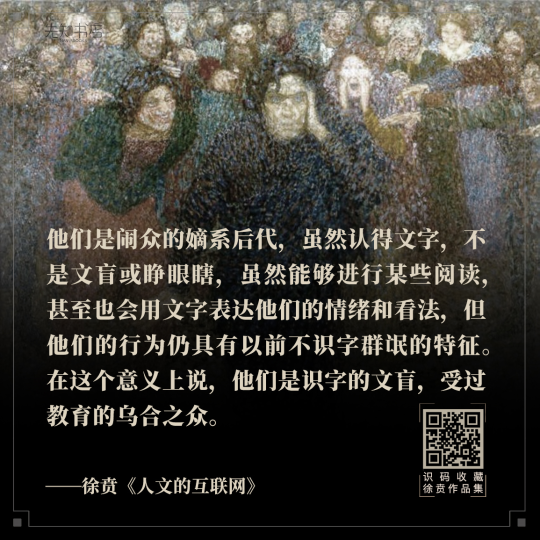 因此,洞悉我们正在遭遇的危机,以及关乎每个人的重要问题,都不可不读徐贲。您可点击下方链接,收藏《人文的互联网》,还可在规格中,一键收藏徐贲“互联网时代的人文通识七书”(含绝版好书)。