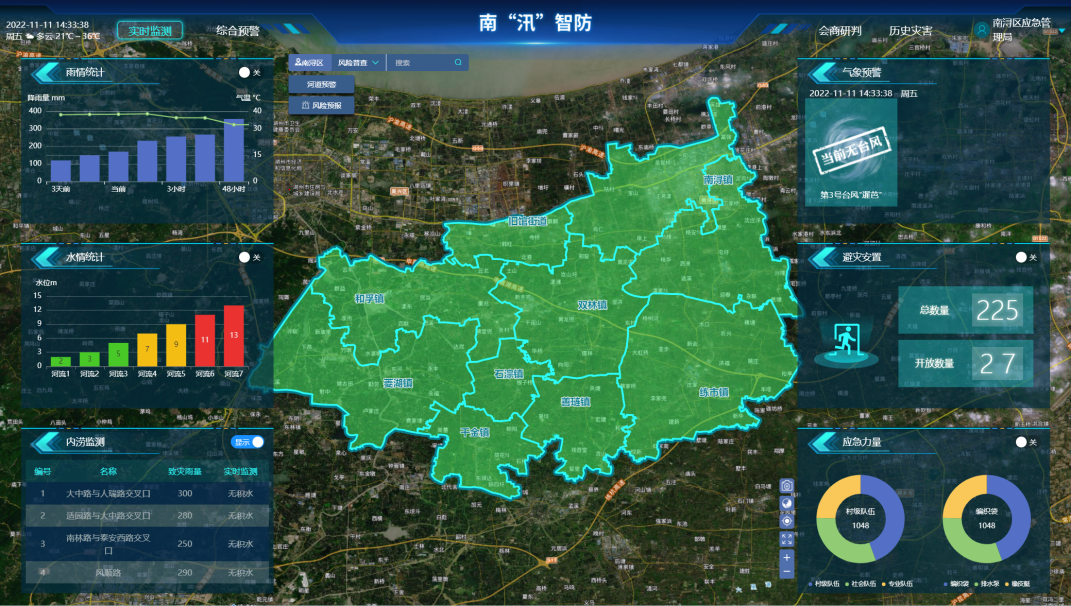 台风“梅花”登陆期间,自然灾害综合监测预警应急指挥平台预测在暴雨、大风影响下,菱湖、南浔、练市等乡镇将出现小范围的洪涝灾害,经会商研判,及时启动III级应急响应;同时平台自动发送指令至基层网格员,排查老旧危房、独居老人及建筑工地等各类单位场所7980处,处置风险隐患602个,实现对18300人的成功转移安置。