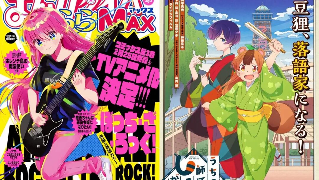 又是相似的题材,但并不相似的故事主线。《孤独摇滚!》讲述了内向女主追求音乐梦的故事,《我家师傅没有尾巴》则是高冷师傅和蠢萌狸猫徒弟的贴贴,漫画中加入了很多经典落语的科普,声优阵容很让人期待。