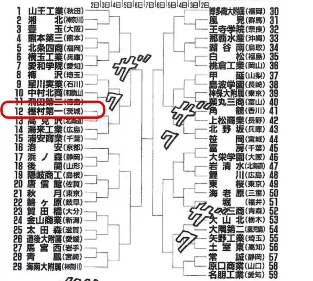但是茨城县看上去实在有些过于冷门,从赛程表的位置来看茨城县唯一的这支代表队实力好像并不强,所以给我们的感觉应该是凑数的,但是仔细思考对井上老师创作的风格了解,井上老师从未有过湊数一说!茨城县能跟这样几支强队放在同一画面中,它就一定是有幕后的故事!