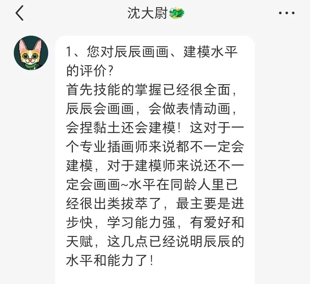 希望辰辰能早日实现自己的梦想,成为建模大师,成为优秀的画家!也祝福每一位小伙伴都能找到属于自己的领域,发光发热。