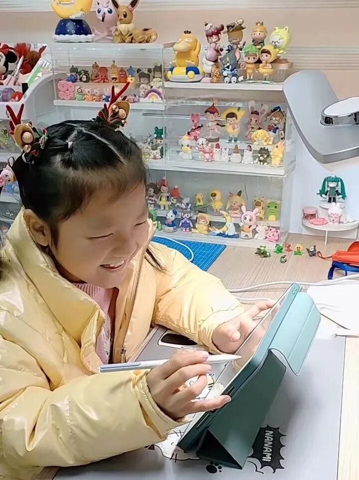 在妈妈的鼓励和监督下,辰辰几乎一有时间就练习画画。9岁左右,妈妈帮辰辰报了素描课,但后来由于不喜欢黑白素描临摹,辰辰决定自己在家练习。在之后的练习中,她逐渐找到了感觉,用procreate疯狂地画卡通,做逐帧动画,一坐就是大半天,这样的专注力对于小朋友来说是可贵的。