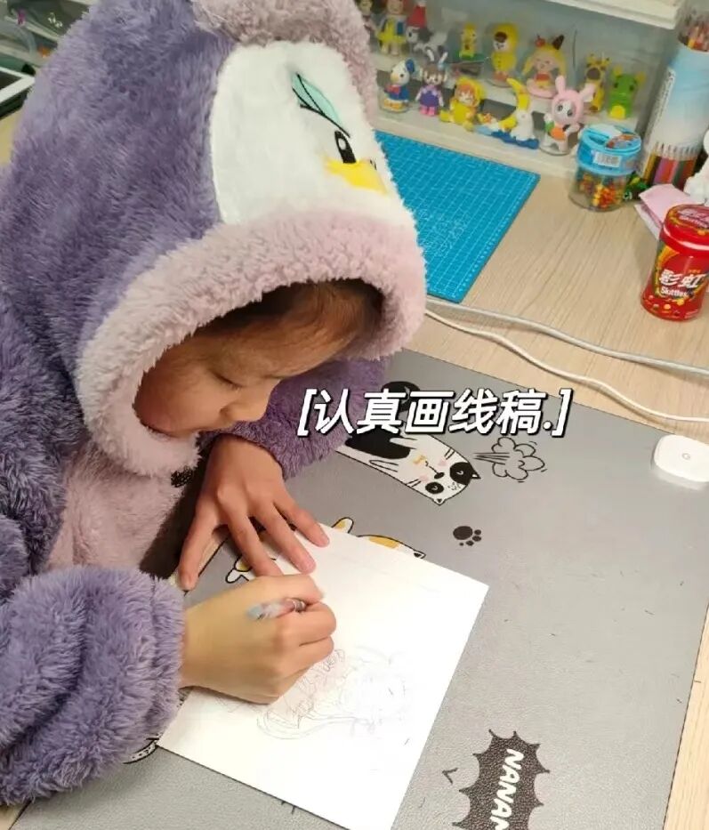 “我一直告诉她,你既然喜欢画画就坚持下去,但是学习也不能太差。”实际上,辰辰妈妈规定了女儿只能在周末玩游戏,画画,其余时间只能写作业、看课外书。辰辰虽然经常念叨“不想奋斗,只想摆烂”,但她也出奇地自律,一边抱怨,一边平衡画画和学习的专注力。