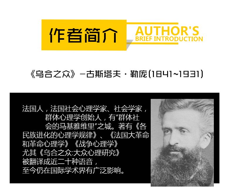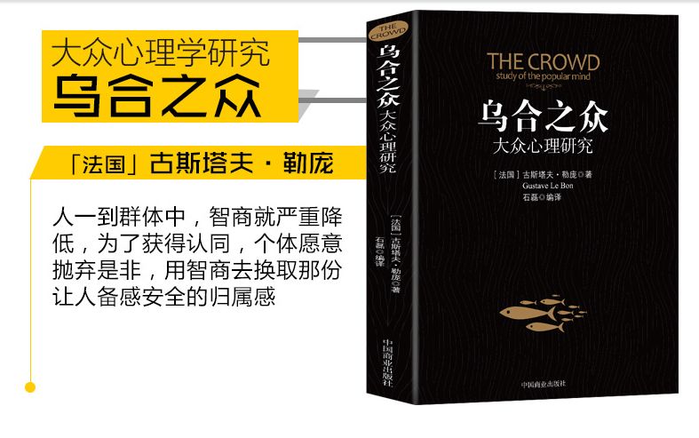 《乌合之众》是群体心理学的奠基之作。深刻影响了弗洛伊德、荣格等学者,和罗斯福、丘吉尔、戴高乐等政治人物。2010年,法国《世界报》与弗拉马里翁出版社联合推出了“改变世界的20本书”,其中就有《乌合之众》。