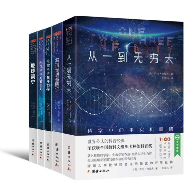 《从一到无穷大》是乔治·伽莫夫的科普代表作品,也是当今世界富有影响的科普经典名著。清华大学校长邱勇给2018级的新书赠送的就是此书。中国工程院院士、电子科技大学校长李言荣推荐本书说:“该书以生动的语言介绍了20世纪以来科学中的一些重大进展,是一本特别适合中学生阅读的科普名著。”这是一本属于“通才教育”的科普书,内容涉及自然科学的方方面面。但与其它常见的按主题分类来写作的科普著作不同,作者以一个个故事打头和串联,把数学、物理乃至生物学的许多内容有机地融合在一起,让人在妙趣横生、恍然大悟以及莞尔一笑中懂得了科学发展的成就和科学知识。