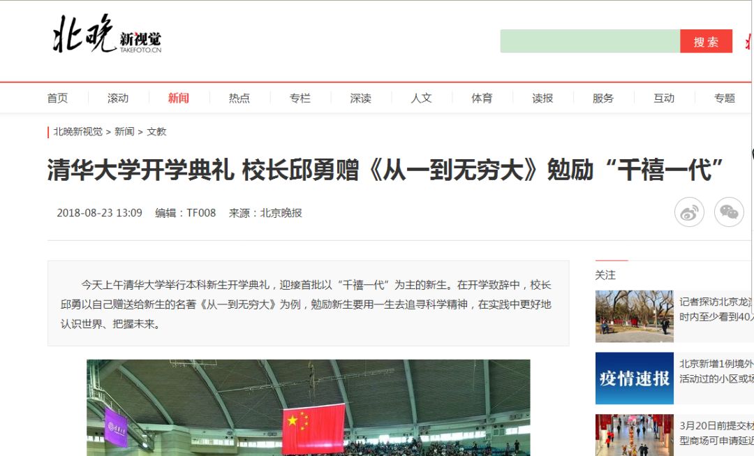 伽莫夫的书在世界范围内受到读者的广泛欢迎。2018年,清华大学校长将伽莫夫的书作为给新生的礼物。在开学典礼上,邱勇校长说:“著名科学家乔治·伽莫夫在宇宙学领域取得了卓越成就并最早提出了遗传密码模型。他的经典著作《从一到无穷大》以生动的语言将数学、物理、化学乃至天文学、地质学、生物学等内容巧妙融合,让读者深切体悟到科学精神、感受到科学魅力。”![]()