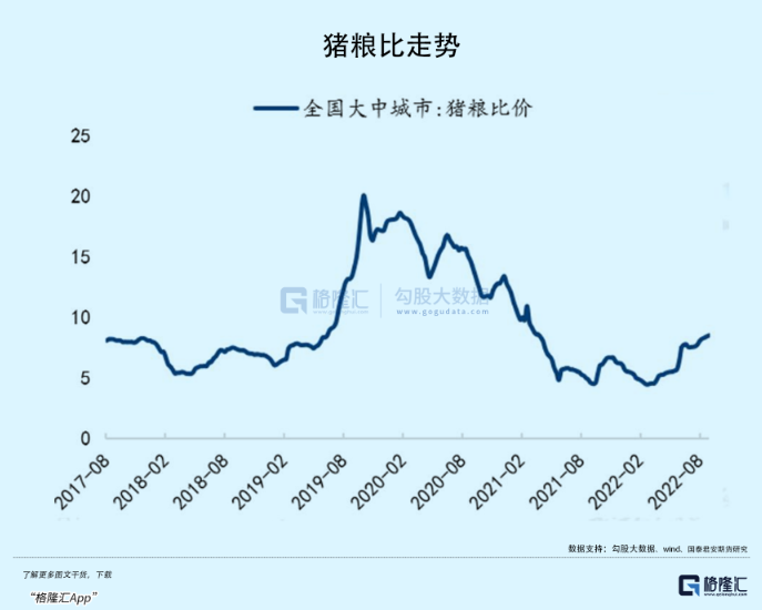 除了猪价上涨外,养殖行业的利润改善还得益于成本端的下降,今年粮食价格经历了一轮大涨之后在下半年开始逐渐趋稳,同时随着秋粮大丰收和粮食恢复大额进口,未来粮食价格上涨担忧也明显消退。尽管饲料价格没有跌,但猪价上涨让猪粮比重新回到了8以上。