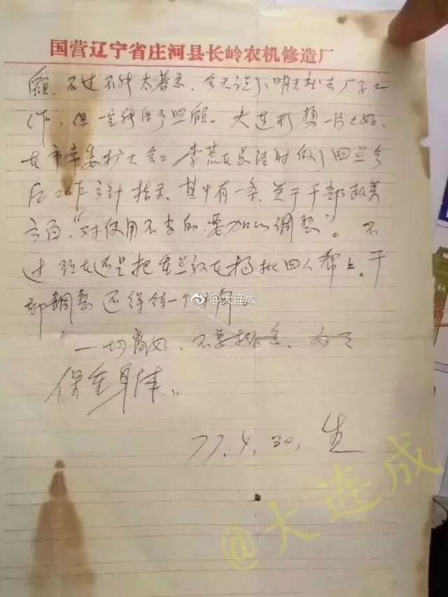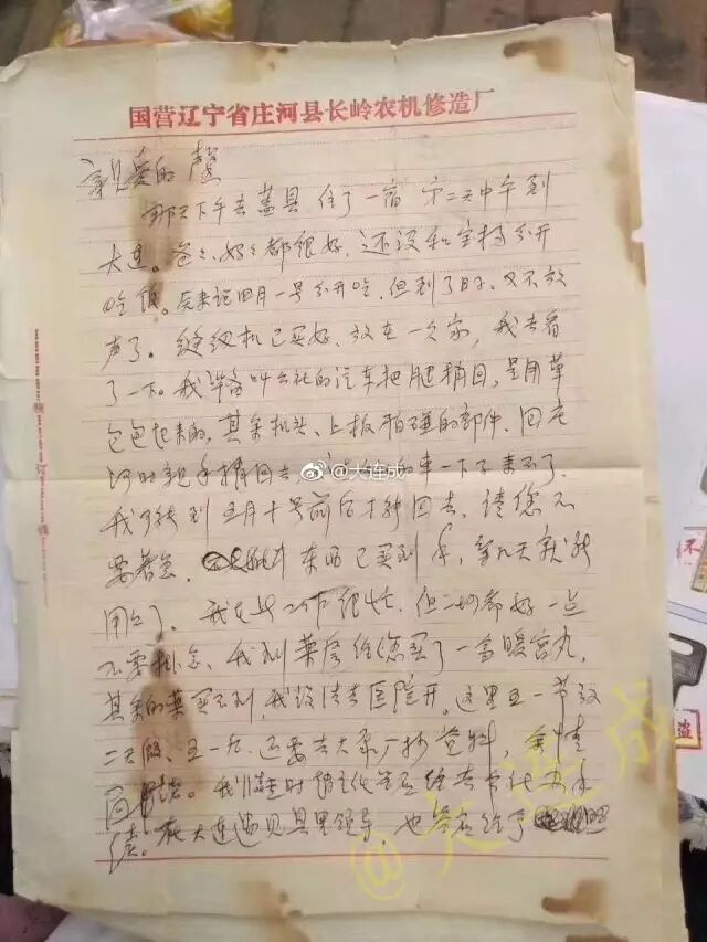 第二、第三张图片是一封信,信纸上带有“国营辽宁省庄河县长岭农机修造厂”字样。