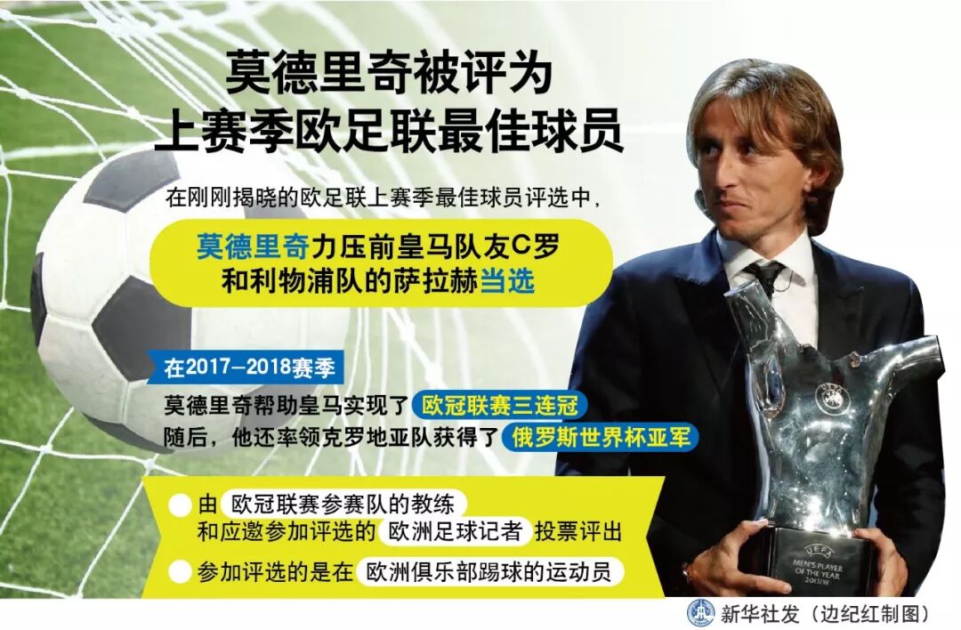 克罗地亚球员莫德里奇被评为上赛季欧足联最佳球员。