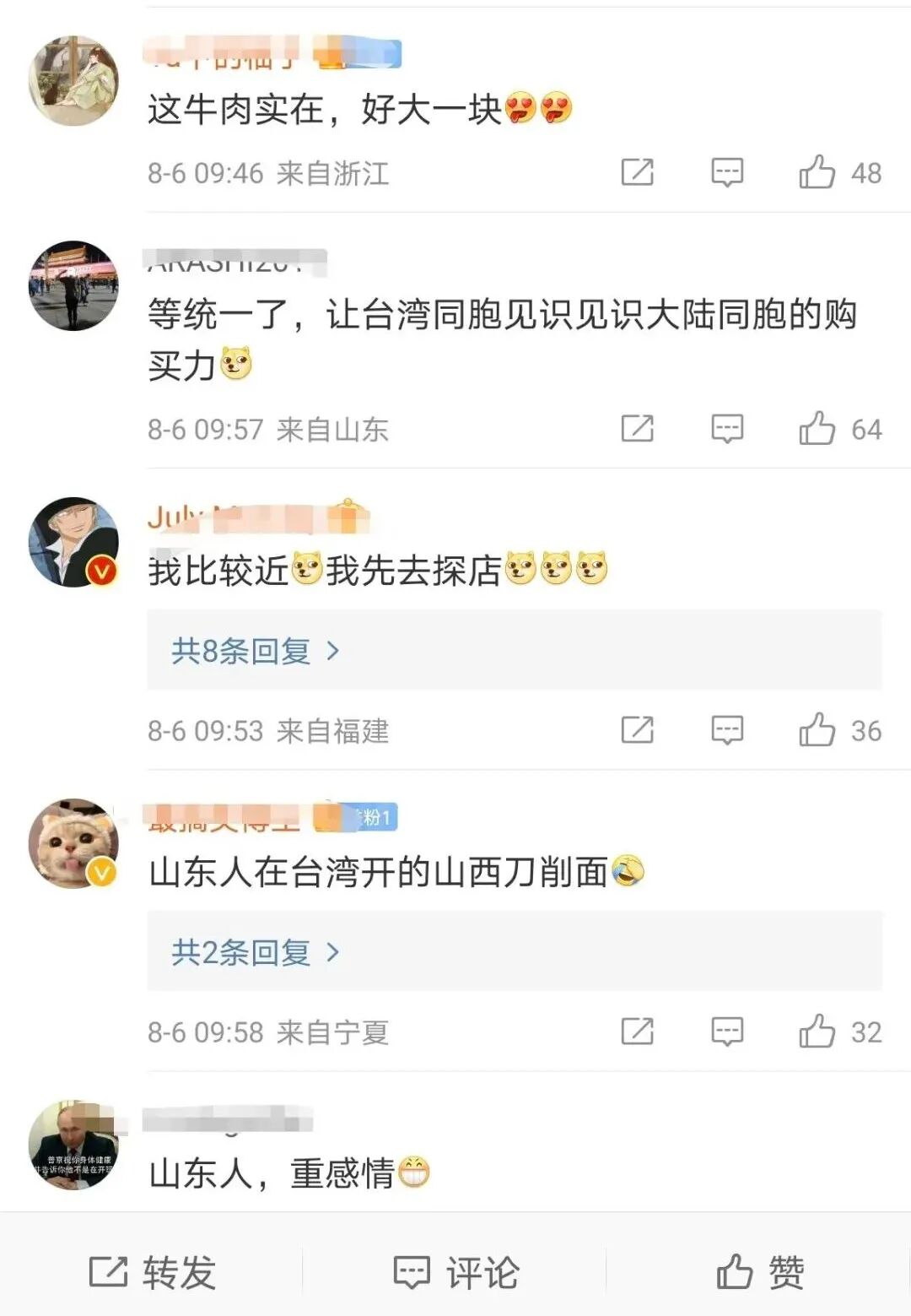 值得一提是,她在聊山东时用了“回”这个字。她说“山东现在发展得很好,进步了很多,现在大陆发展得非常好非常快”。她还说大陆网友过去吃面可以打折。还有网友发现了这家店一个细节:祖籍山东的台湾人雇山西师傅在台湾卖山西刀削面。这位老板娘朴实的回答,也感动了部分网友。网友回应:其实大家的心愿都是很朴实,只是被台独势力阻拦了。正如网友所言,无论蔡英文当局如何兴风作浪,台湾与大陆的血脉联系是永远抹不去也无法否认的。无论从历史上看,还是从法理上论,“台独”分子是根本不可能改变两岸同属一个中国的事实。“台独”势力代表不了广大台湾同胞。国台办发言人马晓光5日在答记者问时表示,我们为捍卫国家主权和领土完整所采取的一切必要行动,针对的是“台独”分裂活动和外部势力干涉,绝非针对台湾同胞,目的是从根本上维护两岸同胞切身利益和中华民族整体利益。来源:中国日报综合自九派新闻、国台办官网、微博,版权归原作者所有。
