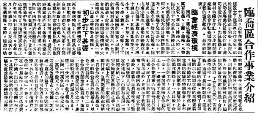 早在1949年,杭市乔司就开办了三家“合作商店”。这里地处新涨沙地,多出产麻、棉等工业原料。“非自用而运销受商人操纵,中间剥削甚重”。