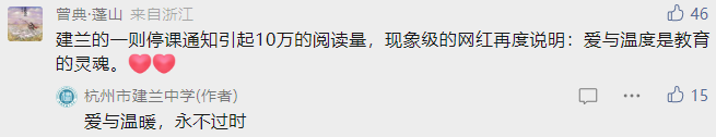 前几天,杭州市教育局发布了关于调整全市初中期末考试的有关通知。当天,杭州建兰中学发布题为《寒尽春生,冷暖同行》的一封信,这封信让不少网友心生感慨。为何?因为信上说“从师生身心健康的角度出发,我校于今天下午始暂停开展线上课程”。它把“身心健康”放在最前面,看似寻常,很多人却读出了一点不寻常。上网课似乎是不少学校的底线,还有一些初中更将复习阶段的网课改为教授下学期的新课。学校或许有自己的考量和焦虑:初中是学生学习的分水岭,每一次争分夺秒或许都能让成绩提升一点。像建兰中学这样,提前把线上课程暂停的学校并不多。该校之所以这样做,应是考虑到学生、老师乃至家长,在这一波疫情下,“阳”的情况越来越多,带着发热等症状上网课有很大压力。显然,学校不是认为学习不重要,而是把学习放进了更大的人生课堂。这一点善意,有不少家长读懂了。如学校在信中所说,“人生是一场漫长的马拉松,读书并不是为了冲破一个又一个人为设置的关卡”。教育者期待同学们在这段时间里看书、锻炼、休养,想一想下一步的规划;希望家长陪伴、观察、帮助孩子。看得出来,在这封致同学、致家长的信里,学校表达了它的教育理念。在这样一个特殊时期,用打破教育“规则”——暂停线上课程的方式,来获得教育的应变能力、关爱能力与思考能力。暂停线上课程、暂停期末考试,也许是一道有多种答案的观察思考题。但,没有标准答案,又何尝不可以呢?建兰中学的这封信,随“暂停线上课程”通知在学校微信公众号进行了推送,很快获得10万+的阅读量。在评论区,有不少人跟帖表达看法,有人总结道,“因时因势而决之,明智;于师于生皆益焉,大爱。”![]()