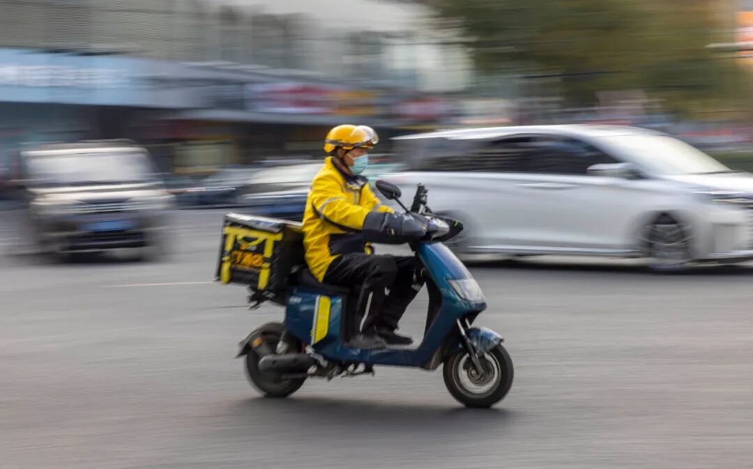 近日,外卖小哥忙碌地穿梭街头送货上门。浙江日报 记者 朱海伟 摄