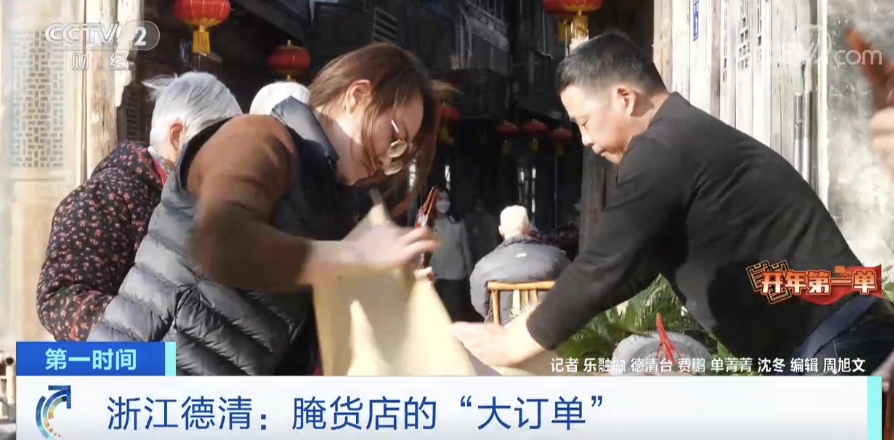 在浙江省湖州市德清县新市古镇,当地一家腌货店,现在正在为新年后的第一个“大订单”忙碌着。这是一笔来之不易的订单。酱鸡、酱鸭是很多南方人过春节的必备年货。这家以前生意红火的小店,却一度面临关门。他们没有想到,2023年开年,店里生意迎来了大转机。