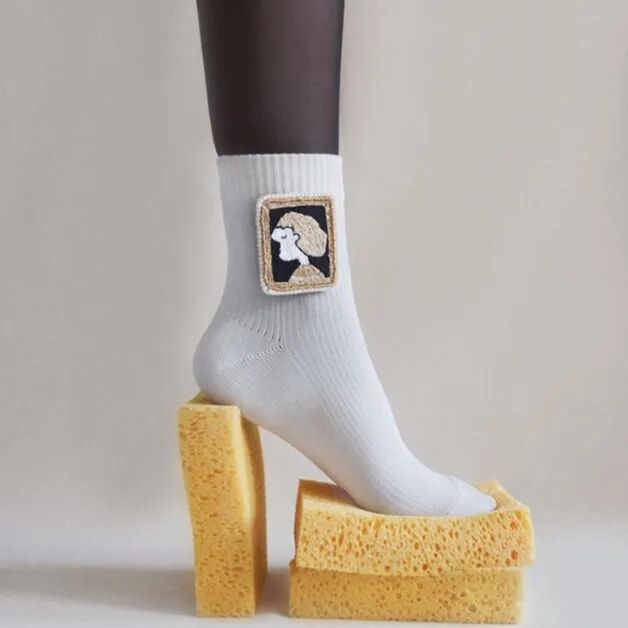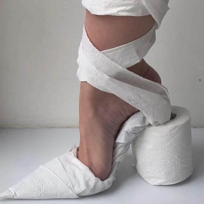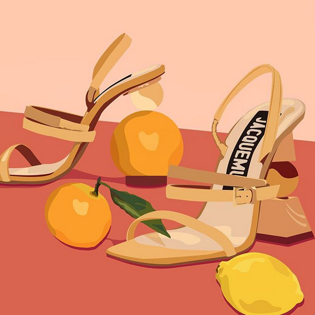 你的第一件Jacquemus单品是帽子?裙子?手袋?蜜总还真的是鞋子。不对称几何设计鞋跟,仿佛开启了新·时装世界的大门。哪个凹造型的时装精,不梦想着拥有好多双呢。在#Jacquemusathome 的脑洞打开环节,异型鞋跟也是被玩坏的热门话题。台灯、香水、蜡烛、水果,没有什么是网友不敢踩的。别说,说就是非常形象了。![]()