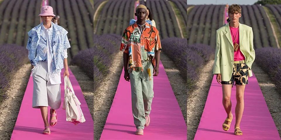 在2020年春夏系列中,他把舞台搬回了普罗旺斯的乡间,让薰衣草与阳光来讲述新一季时装的故事。这个当时刷爆全网的大秀,把浪漫与华丽做到了极致,从粉红色的T台上徐徐走过花田的模特,糖果色的背景,与轻松时髦的夏日设计,如此和谐。当他想出要去做顶无比夸张的草帽时,团队里的的人告诉他“没人会戴这些大帽子,只制造几顶展示概念就可以”。但实际情况却是Le chapeau Bomba的销量夸张到用光生产商仓库中的稻草。没想到最后一根稻草到了时装界,如此正能量。