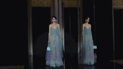 他家的高定更适合律动,伴随这独特异域的音乐随心摆动,整个画面都美死了。全程约14分钟的视频看下来一点都不觉得无聊,浓烈配色的礼服穿在模特身上就像夕阳下的繁花,尽情的绽放,是这一季我觉得最好看的仙裙了!
