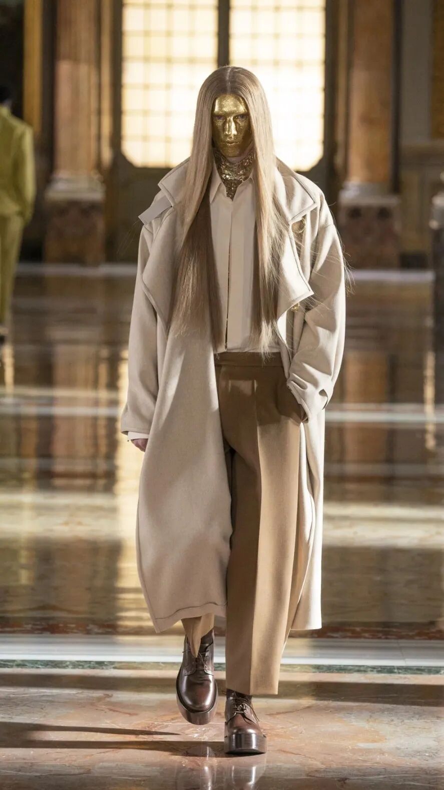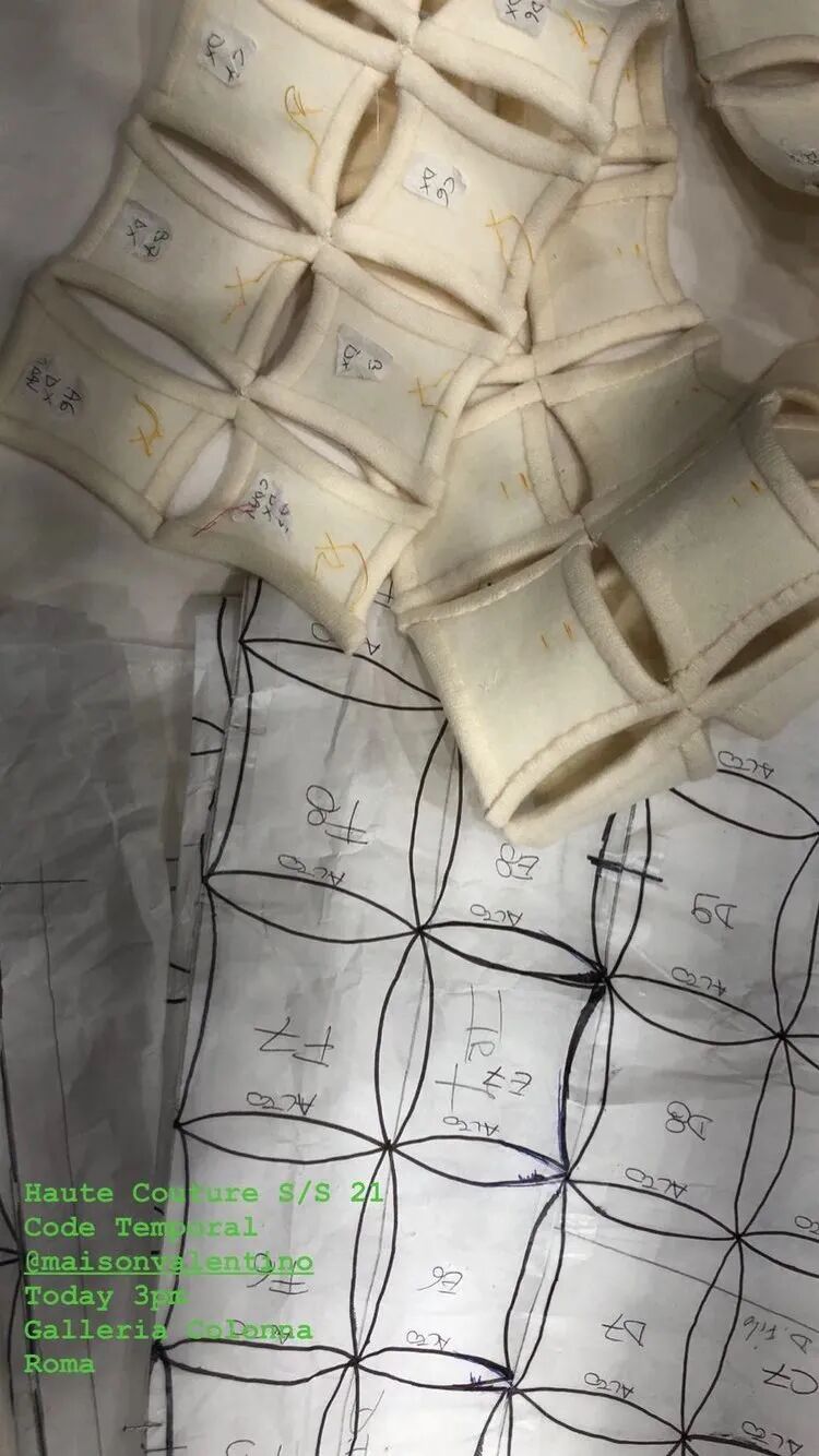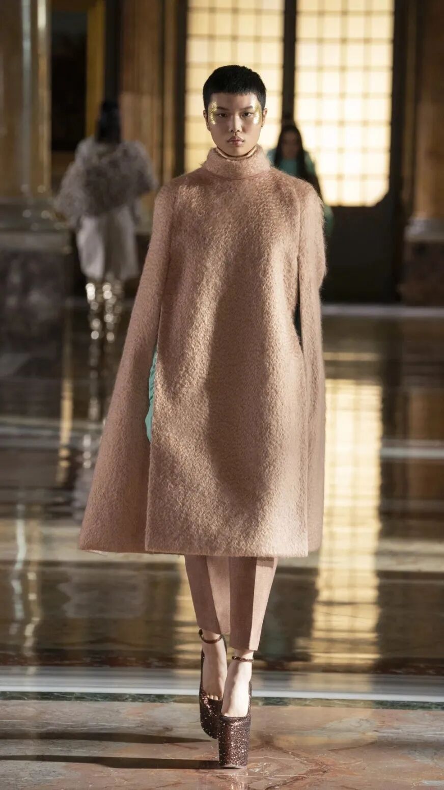 秀场的主题为「Code Temporal」时间法则。借由Valentino先生的话,Pierpaolo Piccioli想传达出用时间精心制作的高定,也代表了时间的法则,可以拥有永恒的价值。