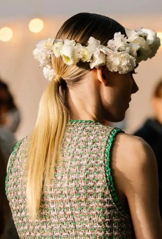 秀场还是选在了CHANLE一贯热爱的Le Grand Palais巴黎大皇宫。里面被布置成了南法波西米亚风格的婚礼现场,充满了复古电影的质感。