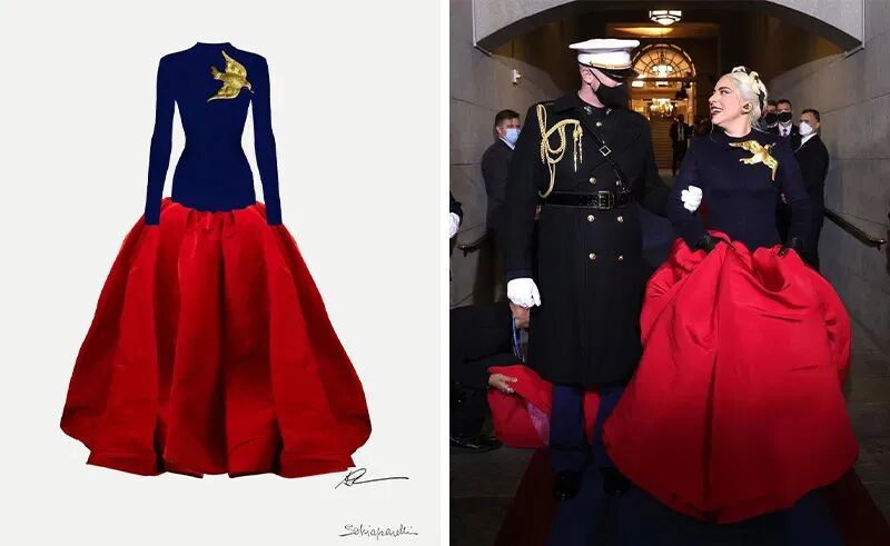 就在大秀之前,LADY GAGA也身穿一件Schiaparelli定制礼群出现在了美国总统就职典礼上。先有政治场合的亮相做铺垫,再有这个探讨女权主义的系列时装,如今的Schiaparelli,很不简单!