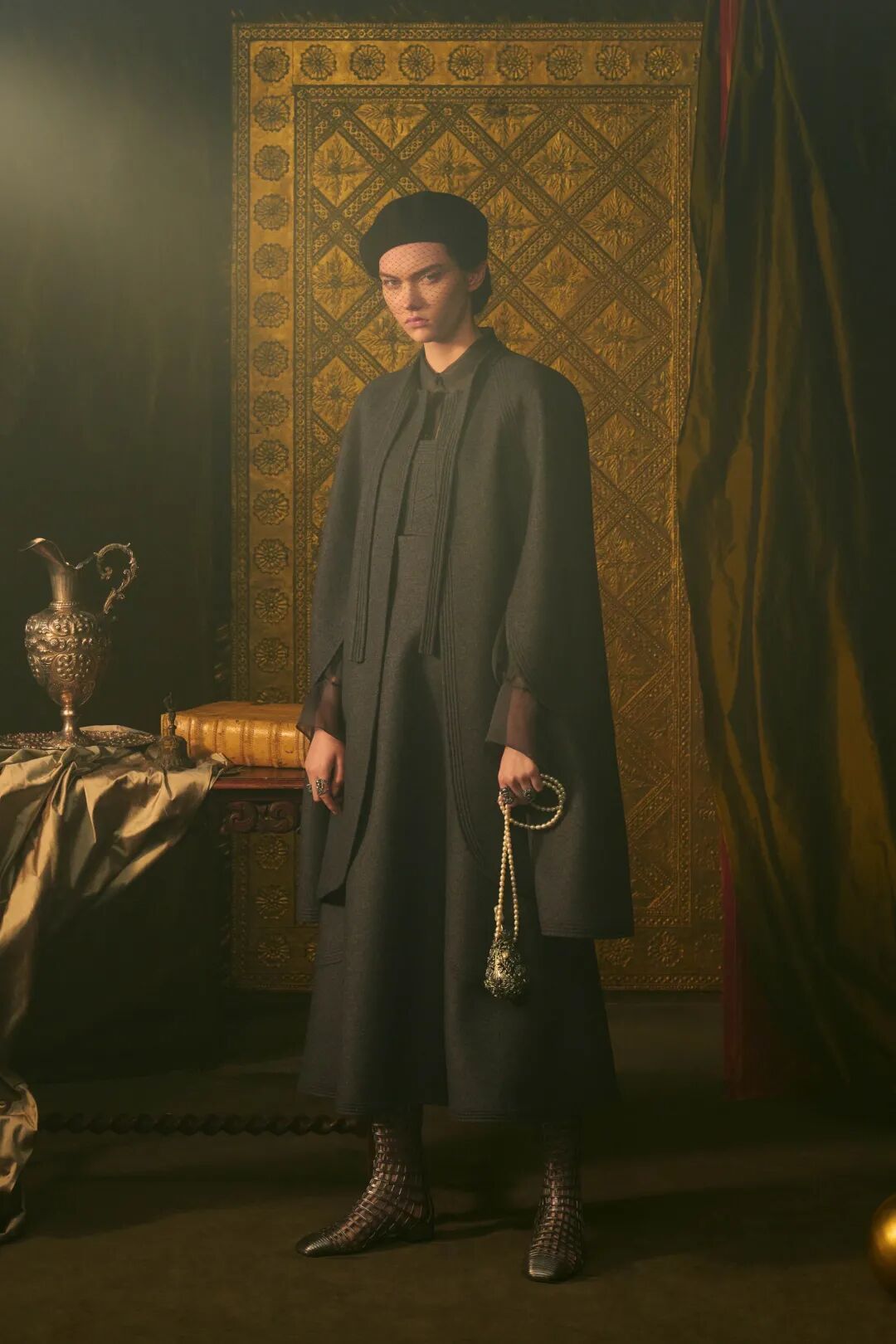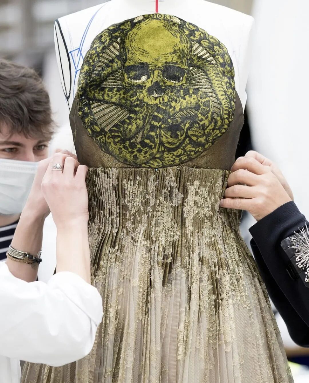 撇去电影不说,Maria为了贴合这次主题,特意将设计偏向了中世纪风。采用极富戏剧性和表现张的廓形与装饰图案,甚至运用到了特殊的制衣工艺。