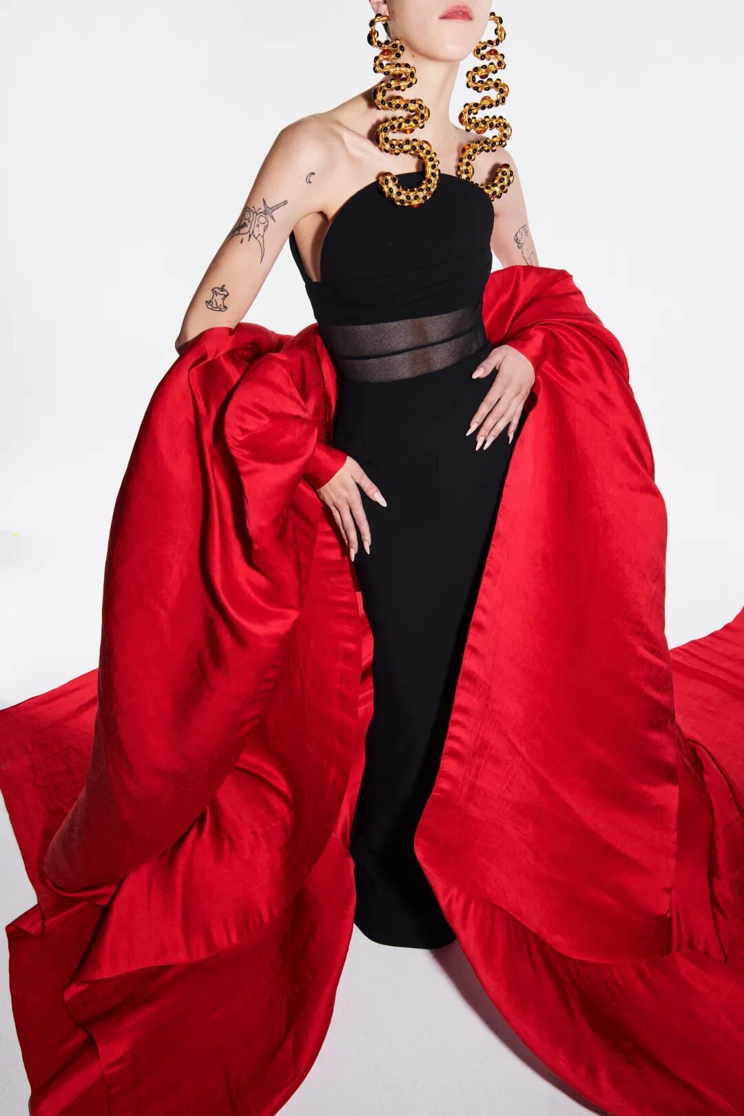 这一季,他在设计里融合了更多热情奔放的元素。以红、黑、粉作为主色,蝴蝶结、繁花的元素与蓬蓬裙融合,再配合上全包眼线与夸张的发型。