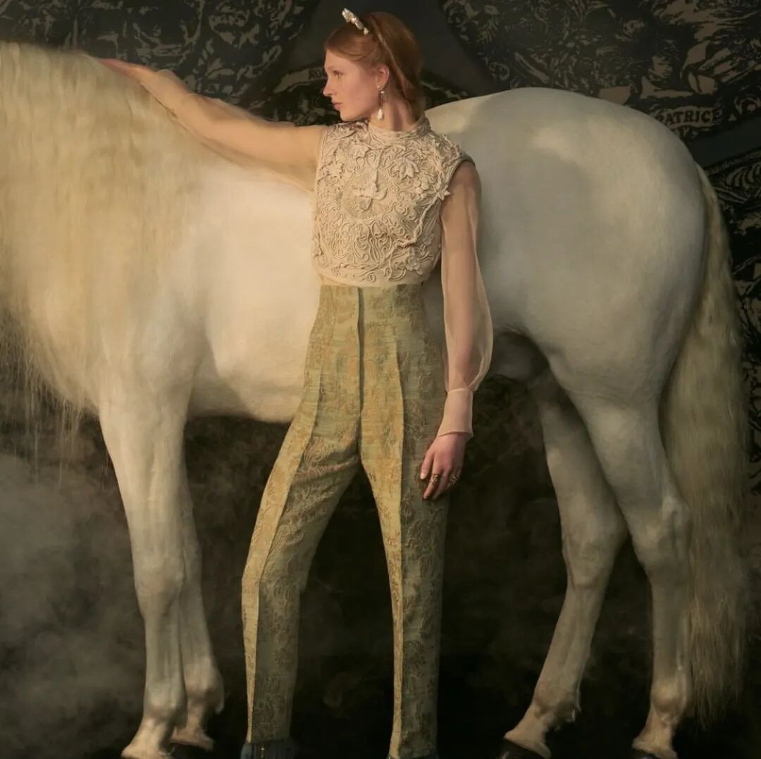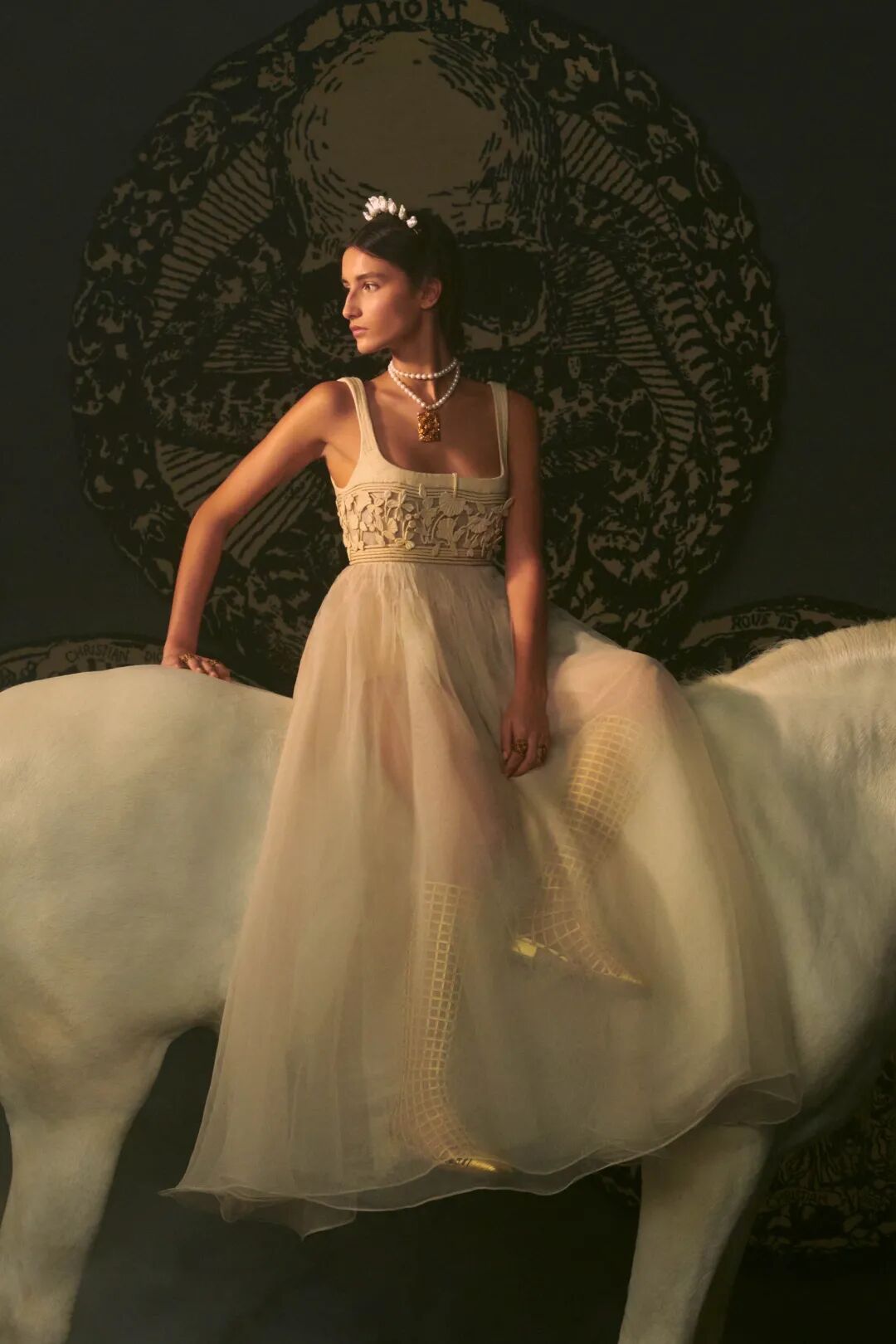 不得不说,当模特们变成了塔罗牌面上的人物后,就领Maria Grazia Chiuri设计的衣服就得到了新的升华,我愿称之为「她最美的一季高定!」。
