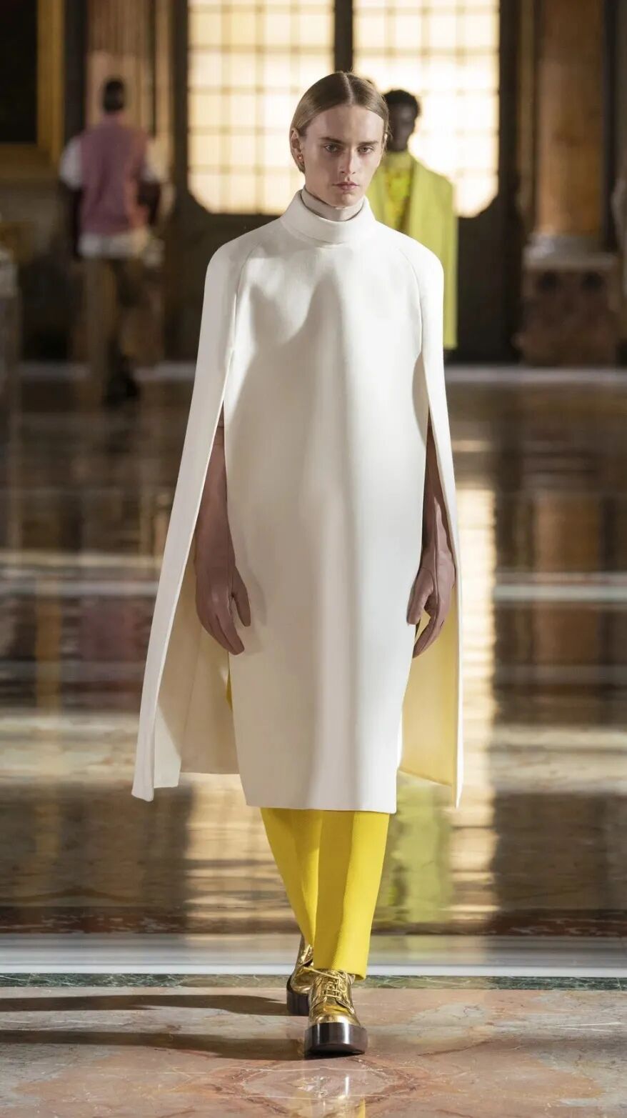 另一边是Pierpaolo Piccioli一贯喜爱加入的高饱和度色彩的碰撞,让原本低调素雅的配色中,增加一些清爽醒目的惊喜