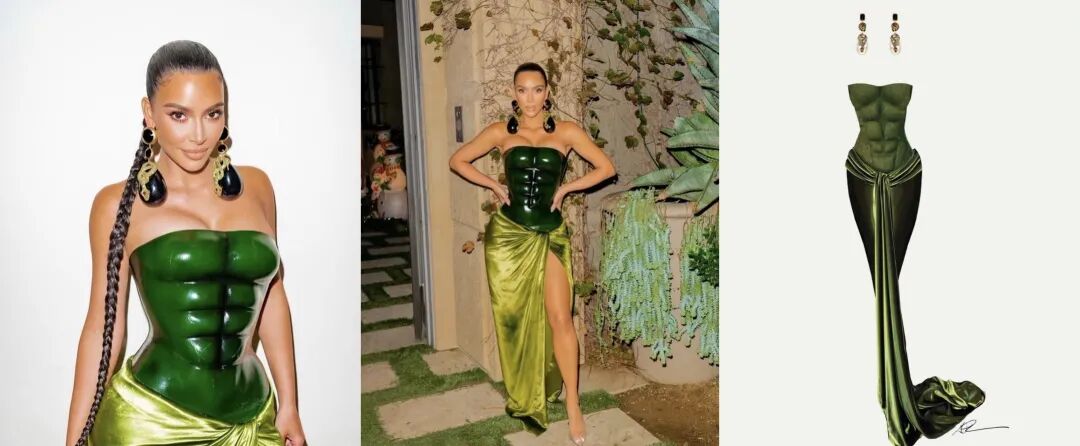 是的,就连卡戴珊也控制不住的穿上了(和她傲人的上围还挺搭)。作为这次高定周的开场秀,这一季的Schiaparelli无疑喜提”热搜“要出圈了!