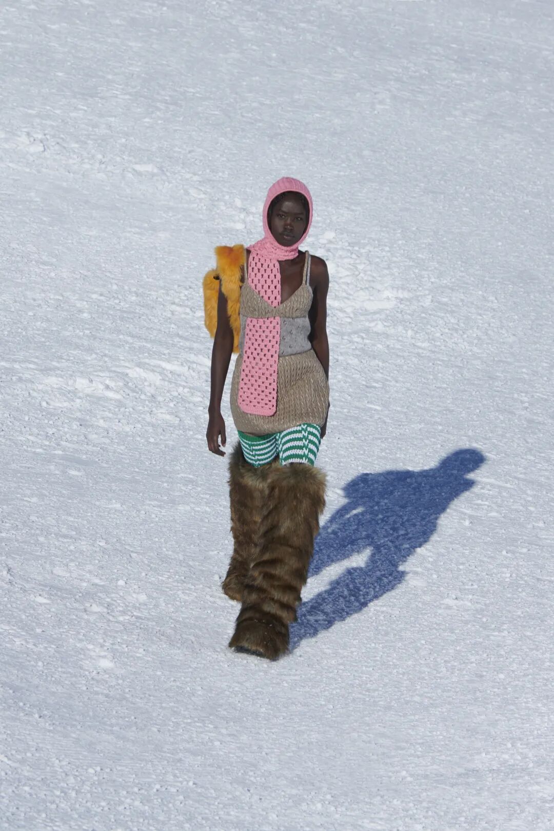 说实话,看着模特穿着吊带在雪地上走台步,蜜总隔着屏幕都感觉到那份雪意~~而Miu姨在《VOGUE》的采访里说自己年轻时,每当天很热时,就会穿着比基尼去滑雪...除了凡尔赛我还能说什么呢?一句话就透露出自己有钱有闲有身材,Miu姨永远是Miu姨。