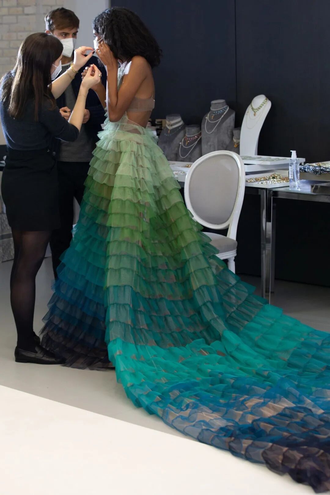 造型上Maria Grazia Chiuri保持了DIOR一贯的端庄与华丽,同时在纱裙的设计上更增加了浪漫的戏剧化表现手法,切合童话了主题,颜值超高!(看看就好,反正也买不起)