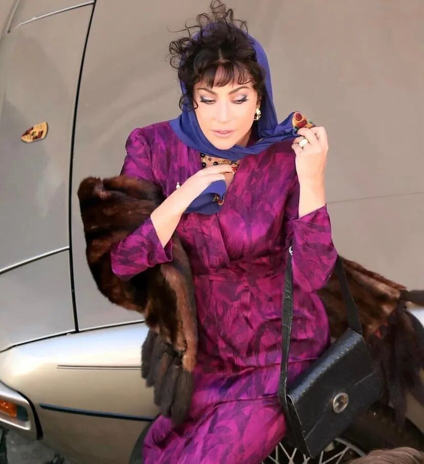 1983年,Maurizio的父亲去世。他继承了50%的股份,成为Gucci的新任掌门人。男人有钱就变坏这事儿可能是千古道理。有了权力在手,Maurizio开始在不同国家金屋藏娇,这些年轻听话的情人们让他的身心得到暂时的休憩。1992年,遇到新情人之后,Maurizio正式提出分居,两人的婚姻由此产生巨大裂痕。更糟糕的是,Gucci的经营每况愈下,年亏损额在2200万美元。没有办法,Maurizio只能将Gucci卖了出去。Gucci家族就此结束了对这个时装帝国绝对的把控力。后来的谋杀故事小报上早已满天飞,1995年2月的一天清晨,Maurizio刚刚到达办公室,只听得“砰砰砰”被人从背后连开4枪,最后一枪击中大脑导致当场死亡。门卫也中了两枪,他事后对记者说,“我忘记是怎么爬上楼梯的了,宪兵到的时候,我抱着古驰先生的头,他死在了我身上。”Maurizio惨死,杀人证据一齐指向Patrizia。事发前,这位Lady Gucci曾在日记本上写下,“没有金钱买不到的罪恶”即便人人都怀疑她买凶杀夫,狗血的是Patrizia依然能云淡风轻的参加葬礼,狗血的是事发两年后,由于没有按约定支付杀人费用,这件事才被揭发。除了对婚姻的失望和经济的纠纷,让这位黑寡妇举枪杀夫的原因之一,居然是她恨透了Maurizio将Gucci卖出。“我是Gucci中的一份子,是所有人中最Gucci的。”即便她被捕的时候都说:“稍等一下,我要穿上我的Gucci。”Gucci家族竟无一人出席庭审,只于审判宣布的当日,在弗洛伦萨的Gucci精品店里,摆上了一副带有Gucci Logo的手铐。除了改编自真实案件的精彩剧情之外,观众们最关心的莫过于Lady Gaga在戏中的造型和服饰了。Gaga不仅在外形上和Patrizia Reggiani同样的娇小精悍,她骨子里的意大利血统让她把这个角色诠释地更加贴合。Lady Gaga碰上Lady Gucci,拜托这可是世界上最敢穿的女人和最懂穿的女人,两位不同年代的时尚女魔头,她们的衣橱一定足够有料!就拍摄现场狗仔们孜孜不倦的路透图来看,Gaga小姐的确没让我们失望。美国版《时尚芭莎》甚至发文称,“It’s Safe To Say That Viewers Will Be Dazzled With Retro Fashion And Incredible Performances.”(我们可以大胆地说,观众一定会被Gaga的复古时尚和无与伦比的表演所倾倒)个么,就顺势带大家品鉴下“Lady Gucci”的片场Outfits