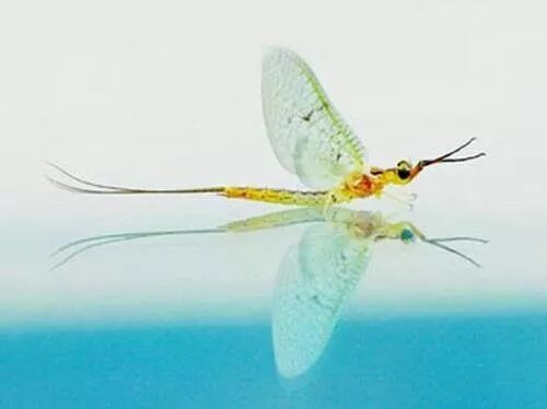 蜉蝣是一种渺小的昆虫,生长于水泽地带。幼虫期稍长,个别种类有活到二三年的。但化为成虫,即不饮不食,在空中飞舞交配,完成其物种的延续后便结束生命,一般都是朝生暮死。蜉蝣又是漂亮的小虫。它身体软弱,有一对相对其身体而言显得很大、完全是透明的翅膀,还有两条长长的尾须,飘舞在空中时,那姿态是纤巧而动人的。而且,蜉蝣喜欢在日落时分成群飞舞,繁殖盛时,死后坠落地面,能积成一厚层。因而,这小东西的死,会引人瞩目,乃至给人以惊心动魄之感。二千多年前,敏感的诗人借这朝生暮死的小虫写出了脆弱的人生在消亡前的短暂美丽和对于终须面临的消亡的困惑。