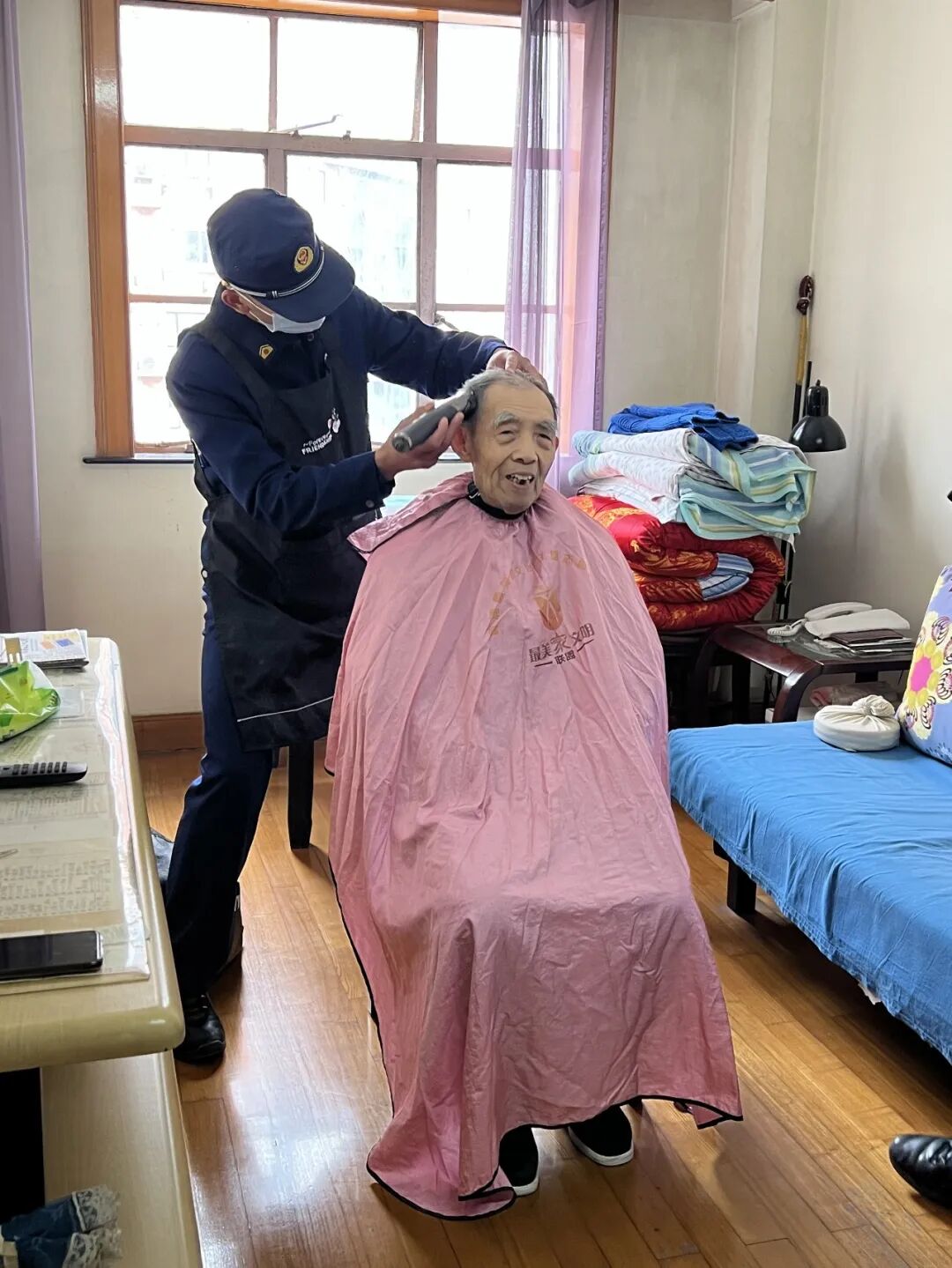 消防队员们还为社区内一些行动不便的高龄老人提供上门理发服务。今年92岁的夏老伯在理完发后,难以掩饰激动的心情,他说:“我年龄大了,行动不便,想请理发师上门理发,都不愿意来的,今天有这样上门的服务太贴心了,看着镜子里精神矍铄的自己露出了满意的笑容。