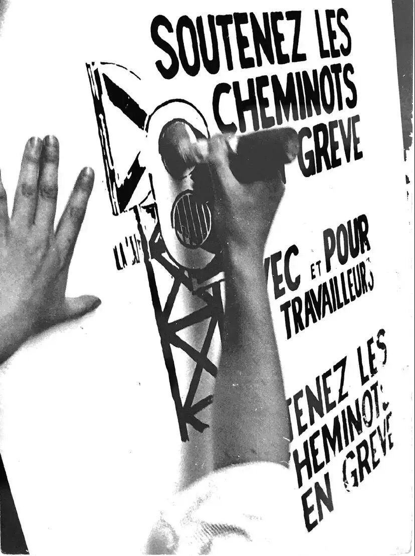 在“五月”总罢工的暴风中心,经典意义上的艺术活动没了踪影,甚至连现代传媒性的艺术应用也不再有生产方式乃至技术上的可能。于是革命的意志和思想表达必须拾起朴素简单的图像生产和复制工艺:印版招贴画。这在工业、艺术和传媒都相当发达的战后法国,确实是特殊的一幕。甚至在电视已经普及的当时,五月风暴又用起了壁报这种“过时”的形式来进行信息传播和思想论争。