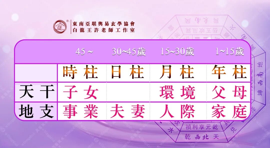 年柱(出生年份)是祖辈之地,源流之始,人事上代表祖先,地理上就是代表出生地。