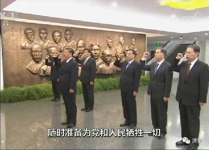 历史将记住2017年10月31日,在中共一大上海纪念馆宣誓厅,悬挂着巨幅中国共产党党旗。面对党旗,习近平带领其他中共中央政治局常委同志一起重温入党誓词。在习近平领誓下,铿锵有力的宣誓声响彻大厅,让现场所有人都深受感染,仿佛回到了那个风雨如磐的年代。